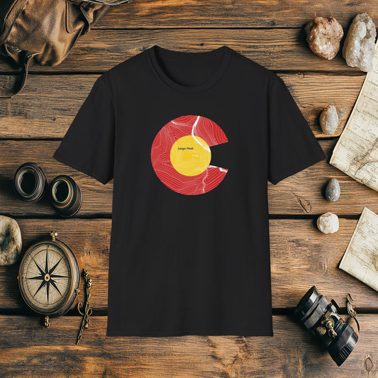 Longs Peak Colorado Flag 14er Topo Map T-Shirt, Mountain Summit, Climb Colorado, Adventure Gift
