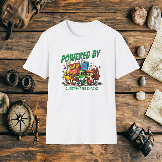 Powered By Questionable Snacks, Funny, Sarcasm, Adventure T-Shirt Gift, Adventure Racing Gift