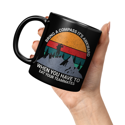 Bring a Compass It's Awkward When You Have To Eat Your Teammates Black Mug , Funny, Sarcasm, Adventure Mug, Adventure Racing Gift